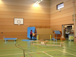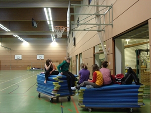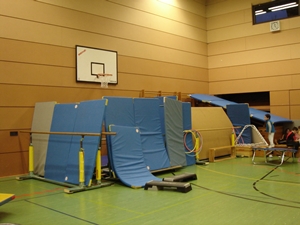 Der Höhepunkt des Tages war die Übernachtung in der Sporthalle. Die Kinder/Jugendliche haben sich zu verschiedene Gruppen zusammen getan, um eine geeignete Schlafmöglichkeit ( Haus ) zu bauen. Es sollte so angenehm wie möglich sein. Je größer desto besser.