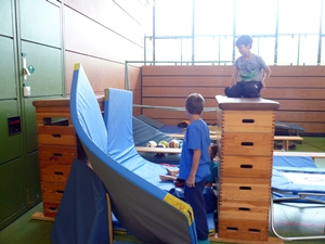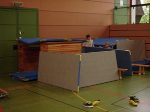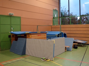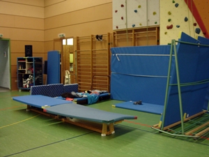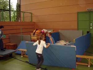 Auf dem Programm stand wie jedes mal " Sport - Spaß - Spiel mit Kickboxen ". Die Kinder/Jugendlichen haben selbstständig ihr Schlafquartier zusammen gebaut, um dort zu übernachten. Es wurde alles aus der Halle verwendet wie Matten, Kasten , Langbänke, Barren und noch vieles mehr ....
