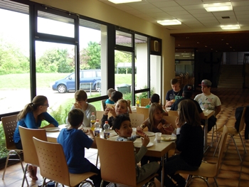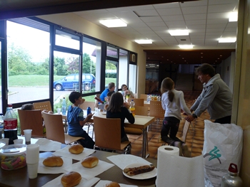 Leider hatte es den ganzen Tag geregnet. Weil am Abend war geplant das wir alle in den Nachbarwald " Spöck " gehen um dort zu grillen. Deswegen mussten wir vor der Halle grillen. Am Sonntag morgen haben wir alle gemeinsam gefrühstückt.