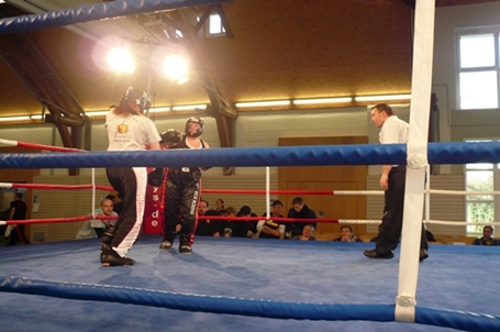 Zum Auftakt trafen 2 Damen im Leichtkontakt - 60 kg aufeinander. Danach wurde die sportliche Gangart härter, die nächsten Kämpfe wurden als Vollkontaktkämpfe ausgetragen.
