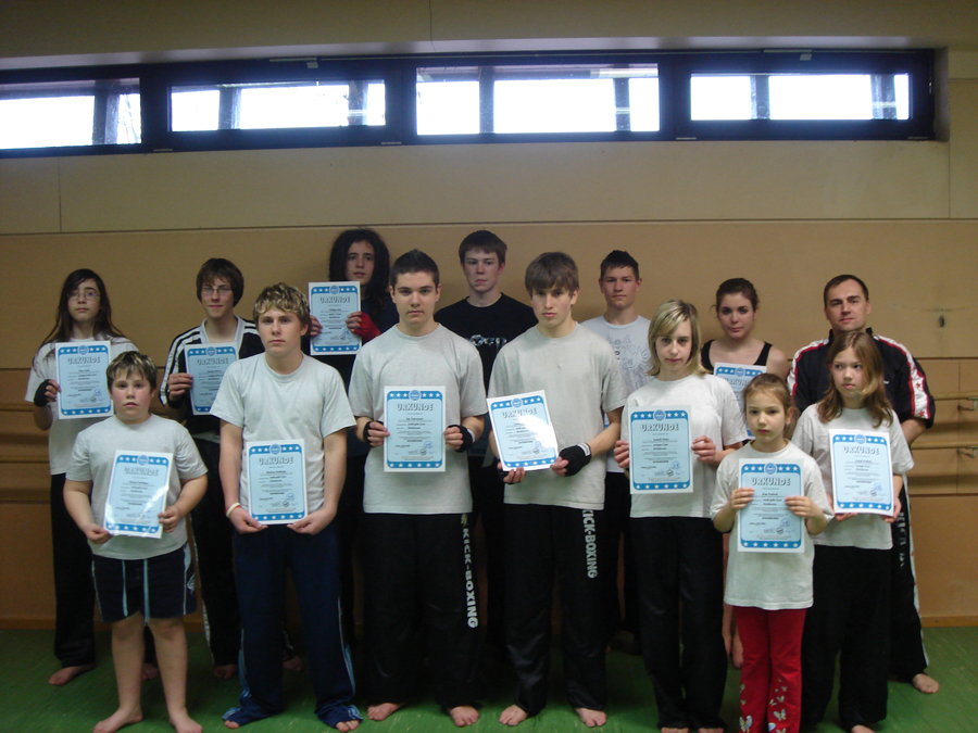 Die Spannung und Aufregung war bei allen sehr groß. Es stellten sich 19 Prüflinge der Prüfung zum nächst höheren Gürtelgrad. Nachdem alle gezeigt haben, dass sie ihre Techniken wie Tritt- und Fausttechniken, und Selbstverteidigung sehr gut trainiert haben und sich der Schweiß gelohnt hat, nahmen alle stolz ihre Urkunden mit der Bestätigung, dass sie nun den nächst höheren Gürtel tragen dürfen, entgegen.